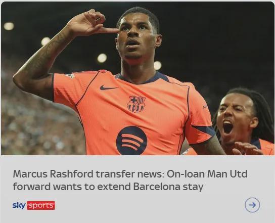 27歲的拉什福德今夏從曼聯租借加盟巴薩,并且至今已經打進5球,紅藍軍團擁有這名前鋒的選擇性買斷條款,而英格蘭人最近明確表示,他希望留在巴薩。